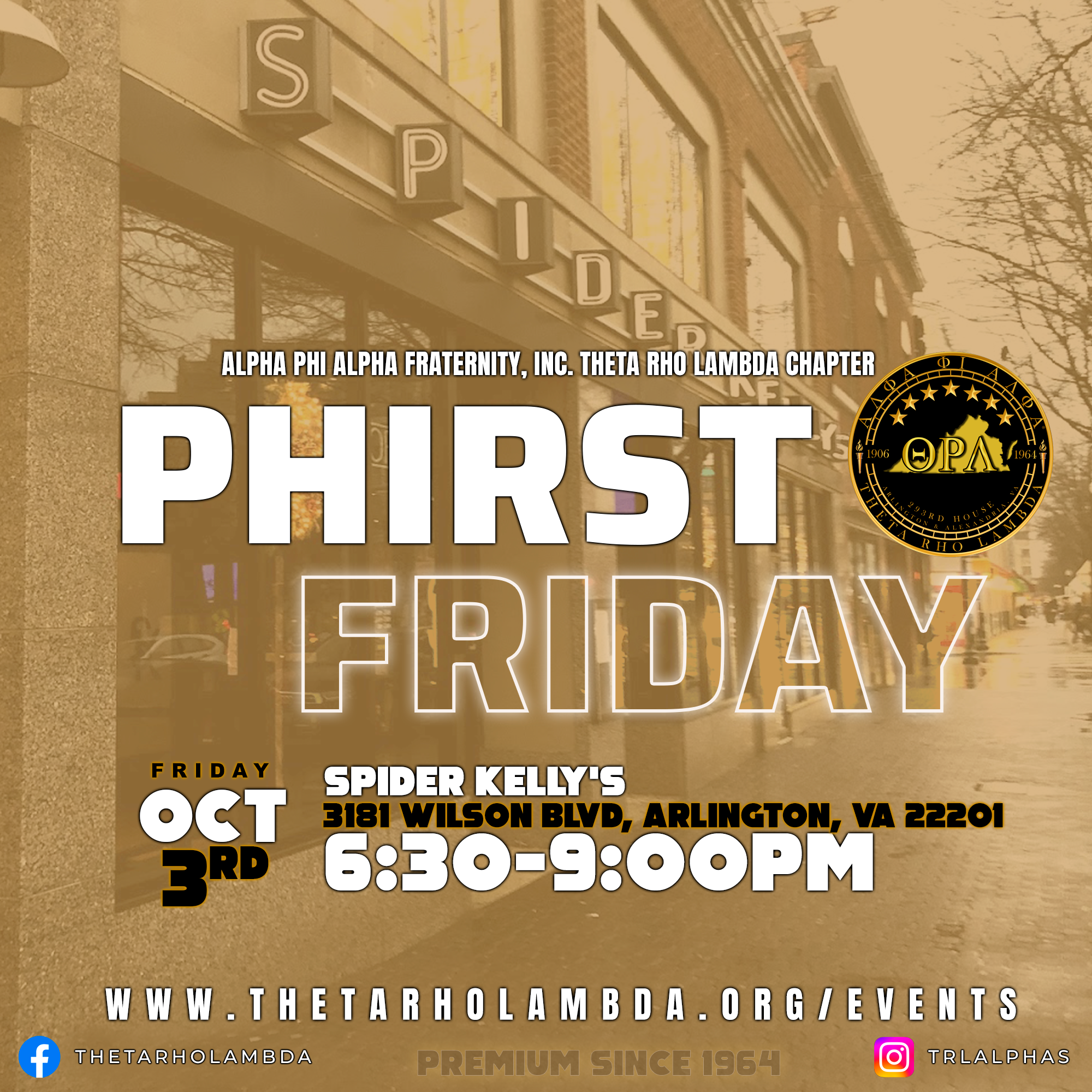 Theta Rho Lambda will host Phirst Fridays at Spider Kellys. All are welcome to attend.